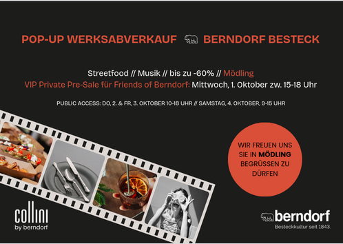 Von 1. bis 4. Okt bin ich in Mödling und schenke bei dem Pop Up Werksabverkauf von Berndorf Besteck Kaffee aus. Schaut vorbei und erlebt Berndorfer Geschichte